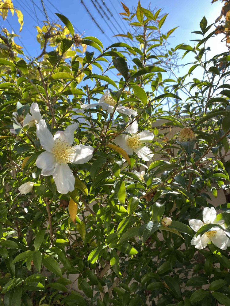 庭,一重咲き白のサザンカ,かわいいな♡の投稿画像