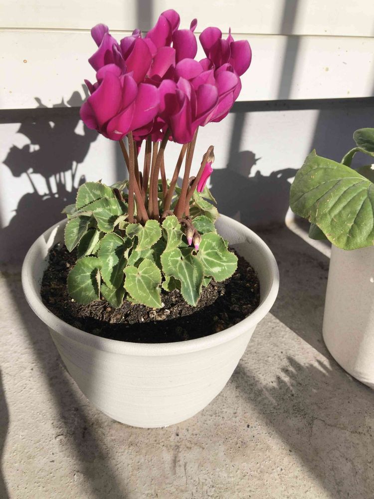 ガーデンシクラメンを鉢に植え替え。