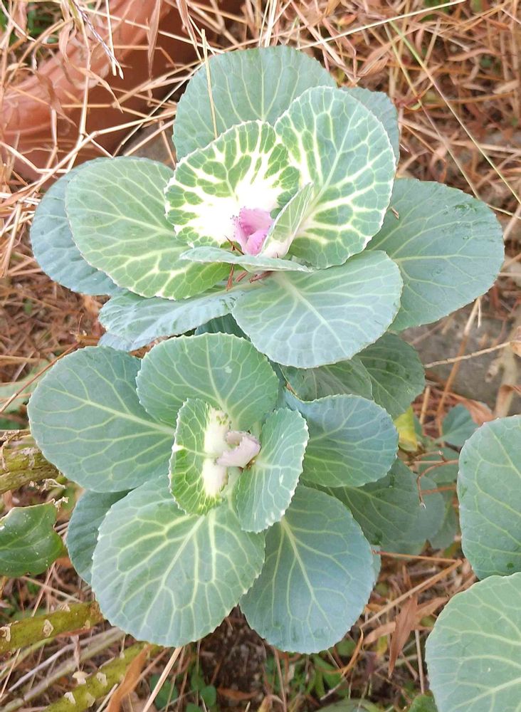 ほったらかしの葉ボタンがそれでも色づいてくれました。