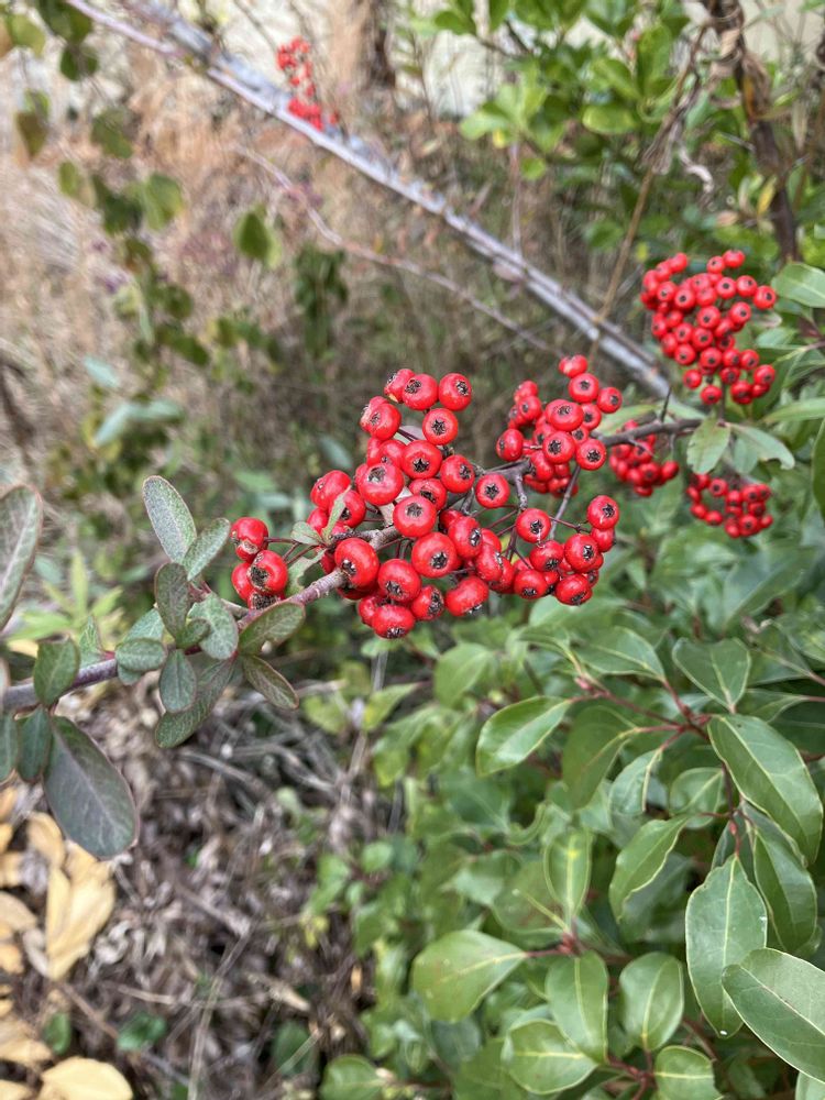 空き地で咲いてました。ピラカンサスらしいです。ナンテンと似ています