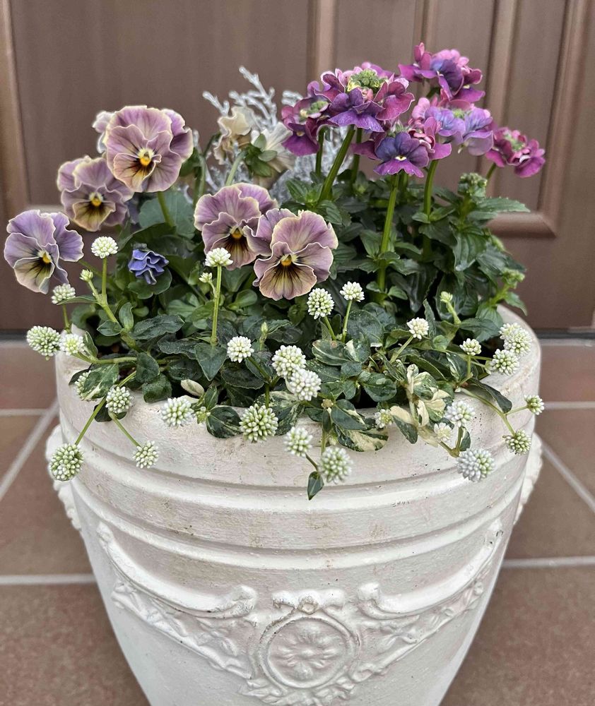 植木鉢は大昔に購入したもので、元々は茶色の素焼き鉢をアイボリーにリメイクしました😊