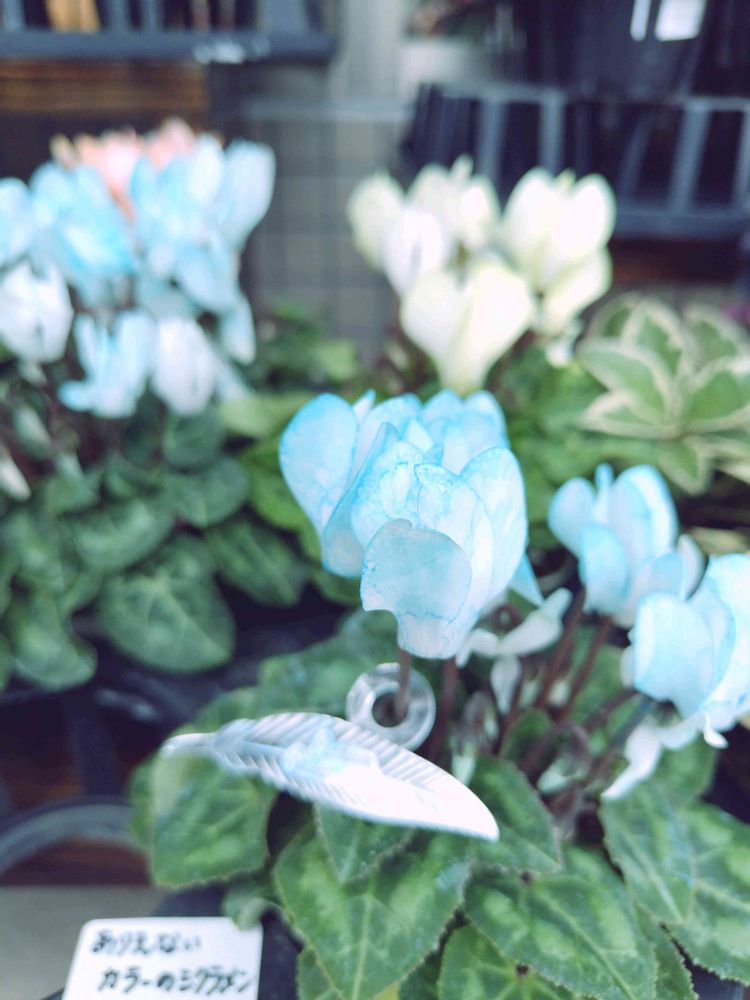 水色のシクラメンって確かにありえない🩵染めてる訳じゃなくて、元々こうゆう花色なんでしょうか?