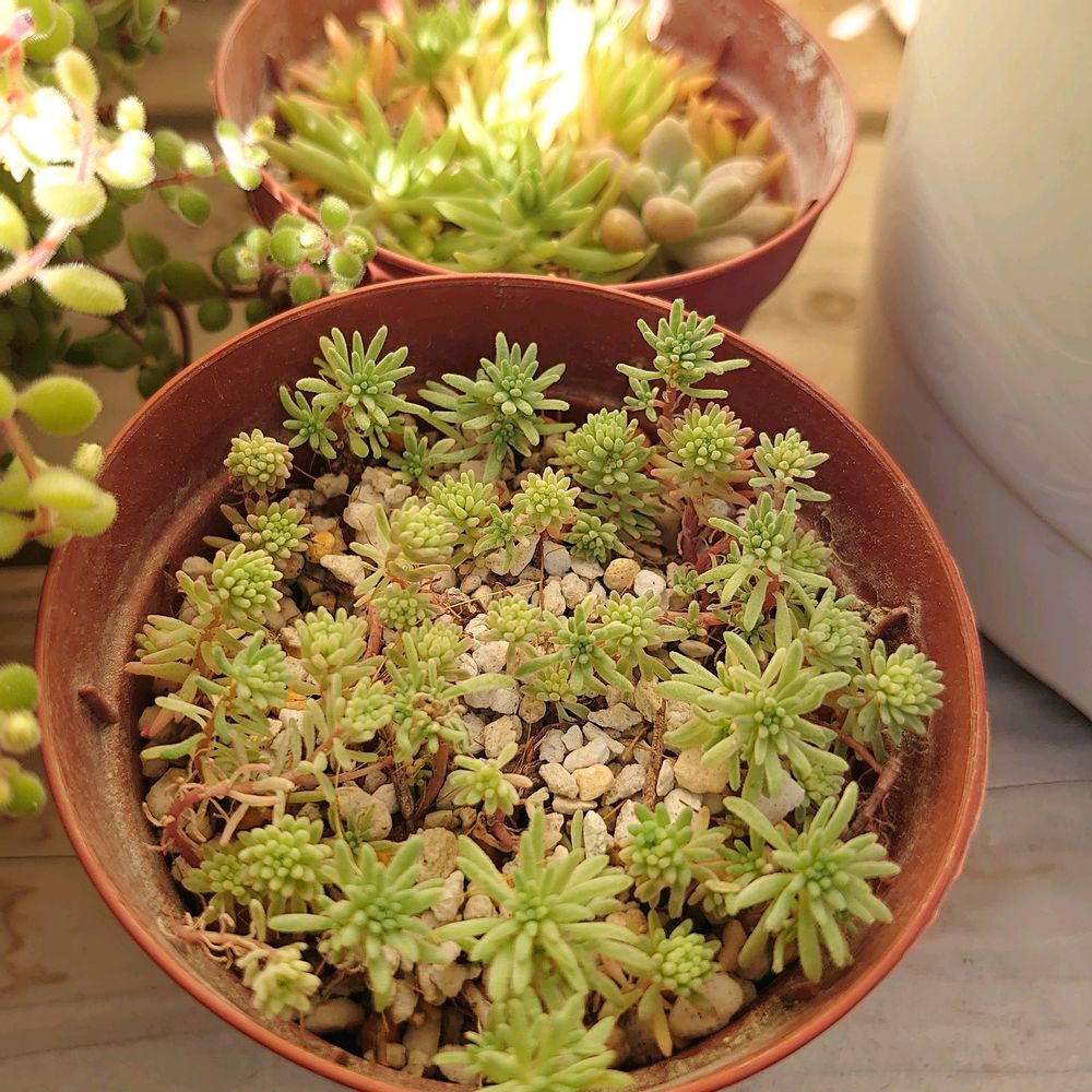 カット苗を挿し木にしました(⁎˃ᴗ˂⁎)💚①パリダム🌱✨可愛いです🥰🌱②ツメレンゲ🌱✨名前がわからなかったので、GSで教えてもらいました😊💚ほんのり紅葉してきました\(*ˊᗜˋ*)/💕ちょっと違う子も混ざってますね😆🌱