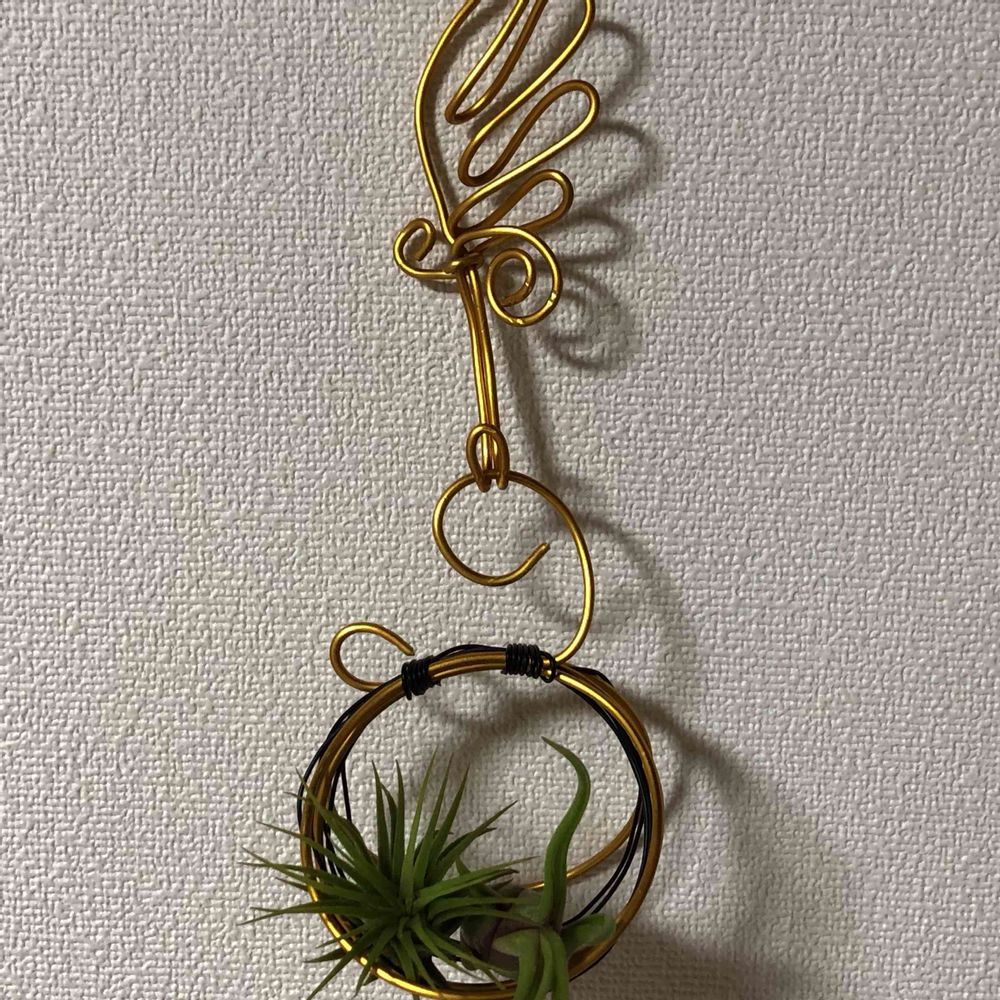 みたりんちゃんに頂いたエアープランツ🌿を可愛く飾りたくて家にあったワイヤーで作ってみた(作成は相方🤭先生はYouTube)
