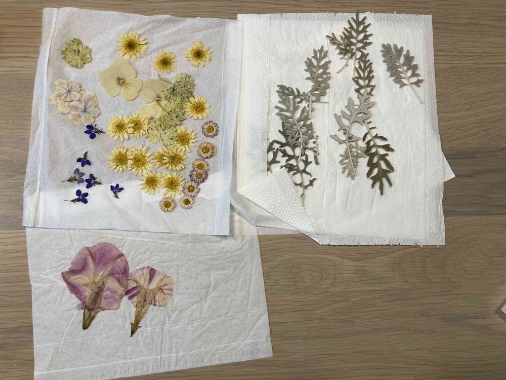 春夏秋冬揃いました。1年以上前に作った押し花です。デージー、紫陽花、朝顔、ロベリア、シロタエギクetcです。