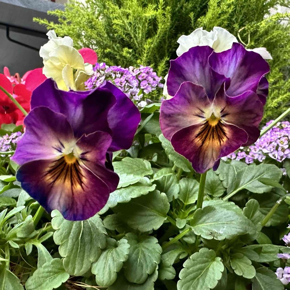お店で濃い色の方がとても綺麗で目に留まったのと、このポットだけ2色だったので「なんだか不思議なビオラ」と思ってお迎えしました😆