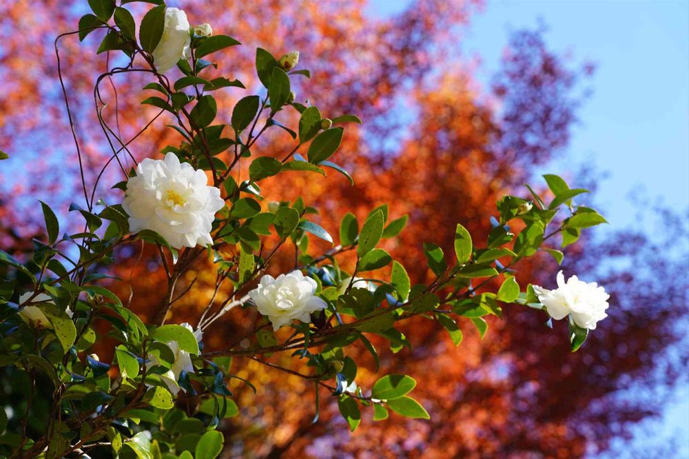 白いサザンカもいいねと母が言っていました。少し肌寒かったですが、快晴だったので、とても気持ちの良いお散歩ができました。