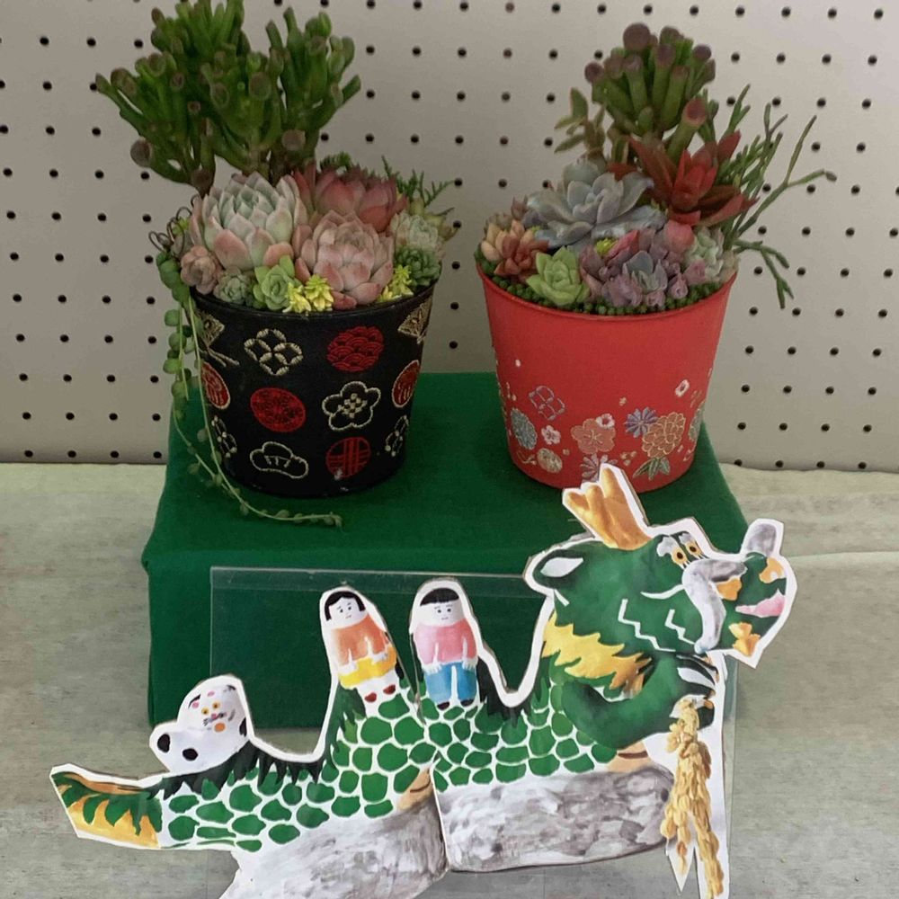 GS仲間の多肉業者さんから、お正月用にと、黒と赤の刺繍の鉢を頂き、