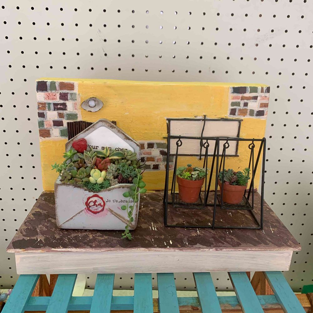 黄色のハウスは、お線香が入っていた木箱が空いたので、リメイクしてみました。