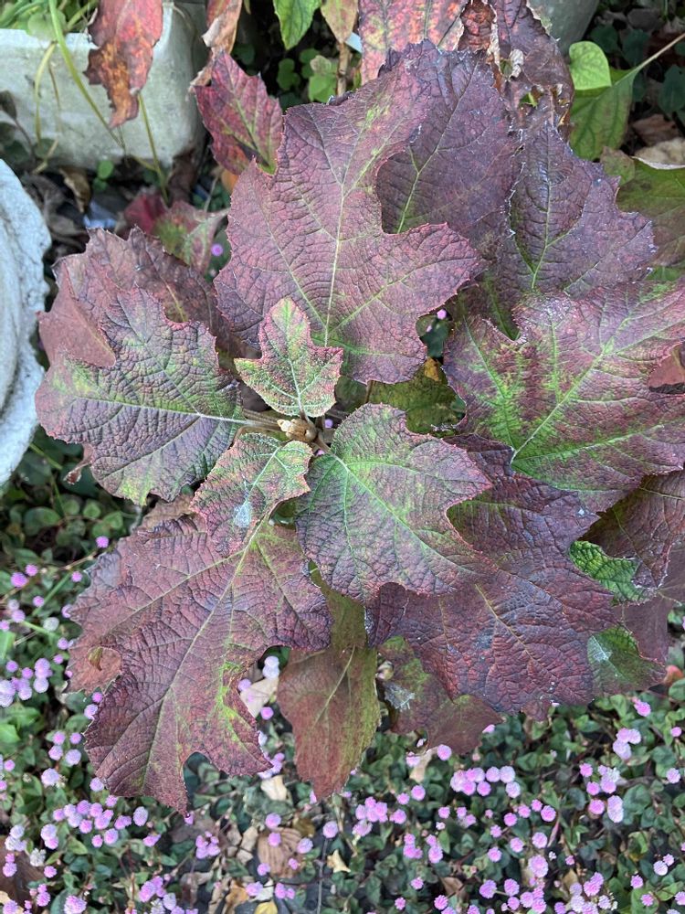 カシワバアジサイの葉、綺麗に色付きましたね✨
