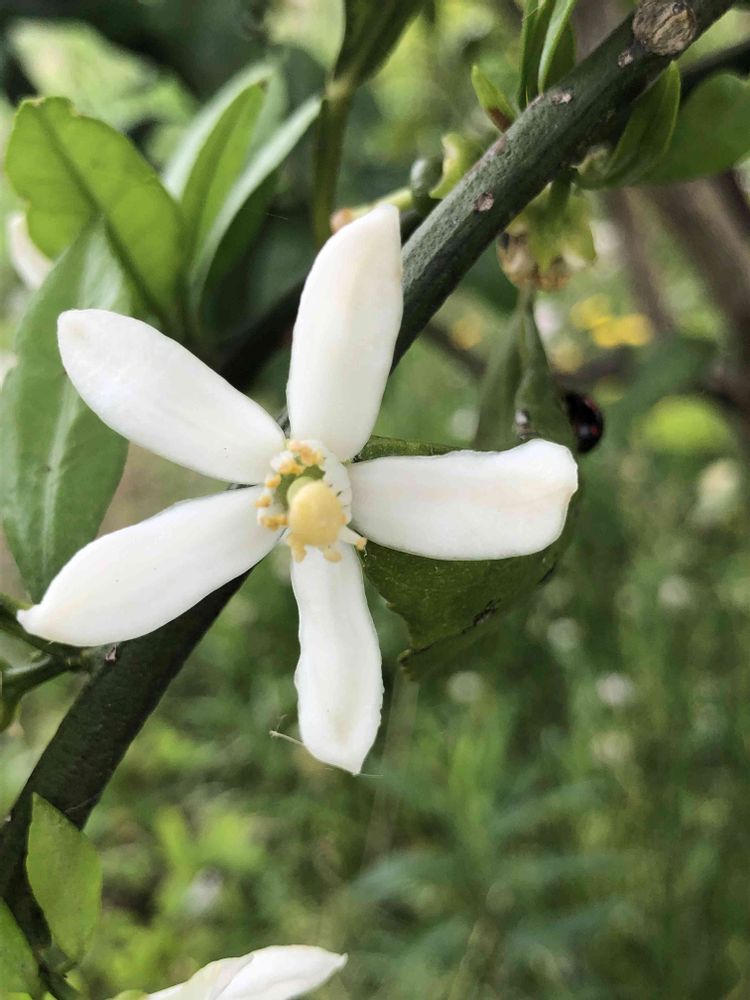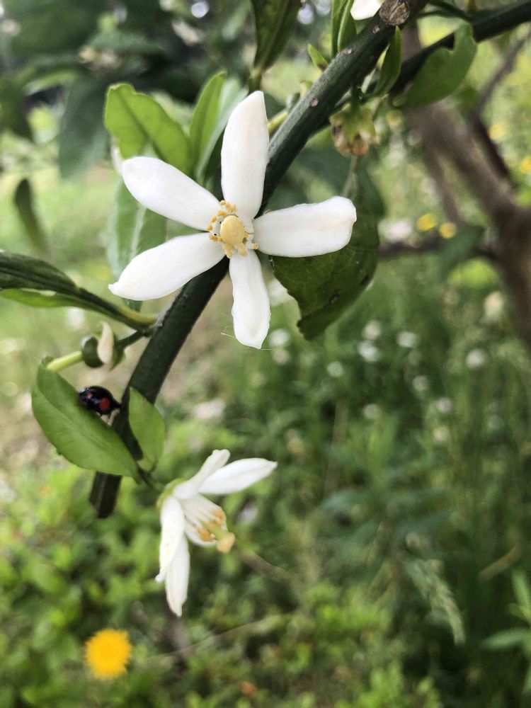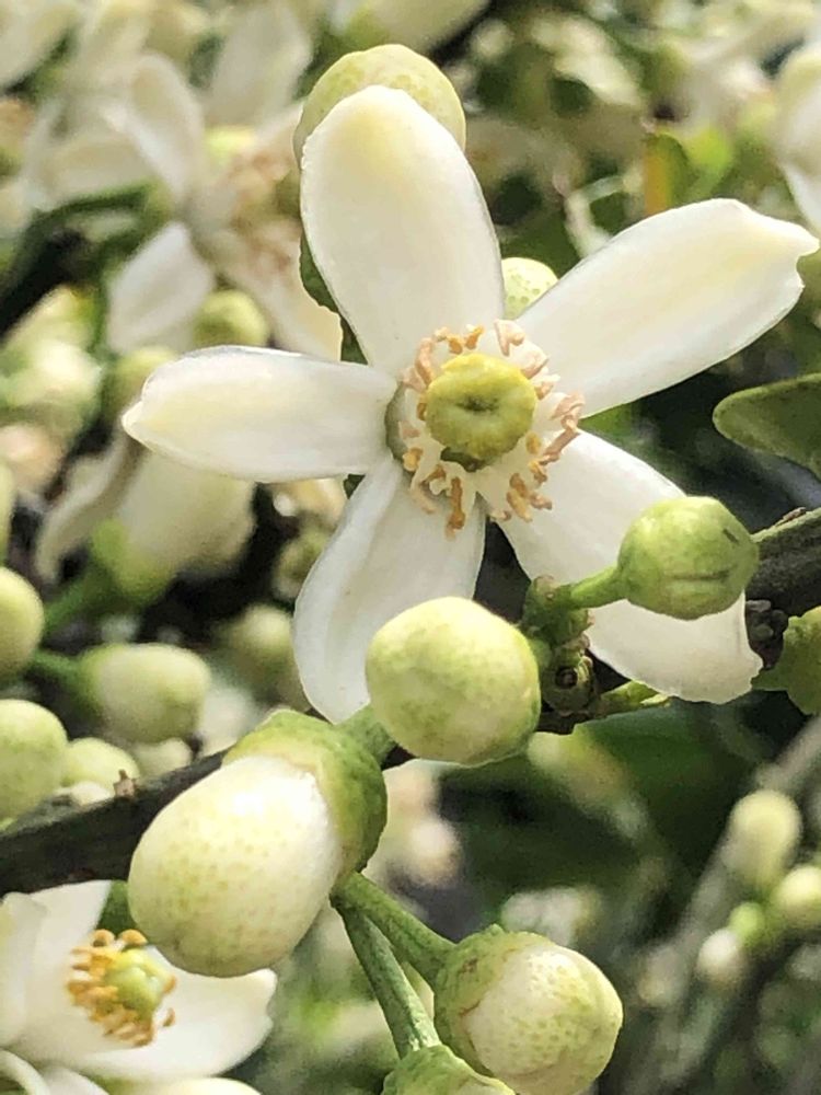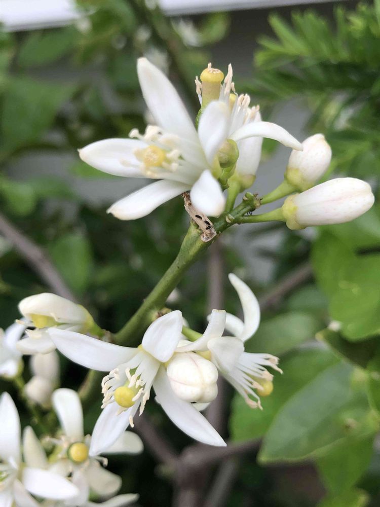 5月に咲く柑橘類の花は、白色でいい香りがします。