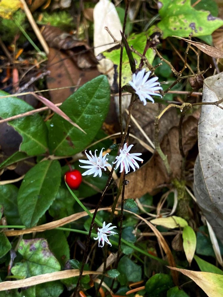 瑞々しい雨上がりのようなキッコウハグマとそれに寄り添うように真っ赤なヤブコウジ♥️