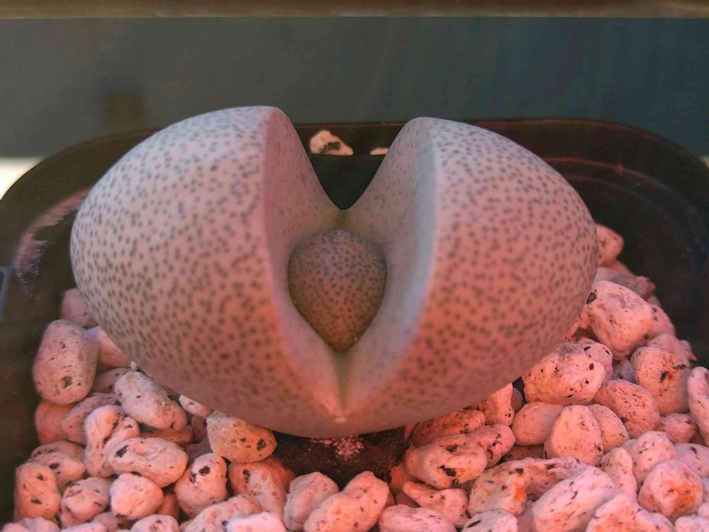 実生は本葉の直径が1センチを超えました。成株は1週間ほど前から次の葉を出し始めている。