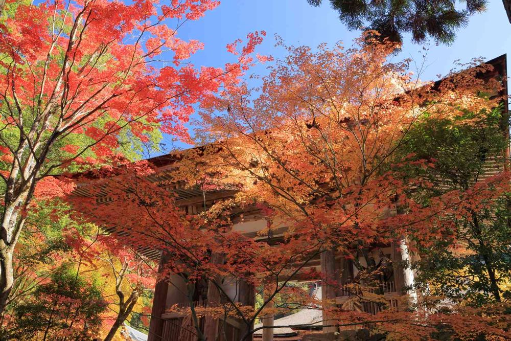 平安時代初期に創設された天台宗寺院で、本堂と三重塔は国宝に指定されています。