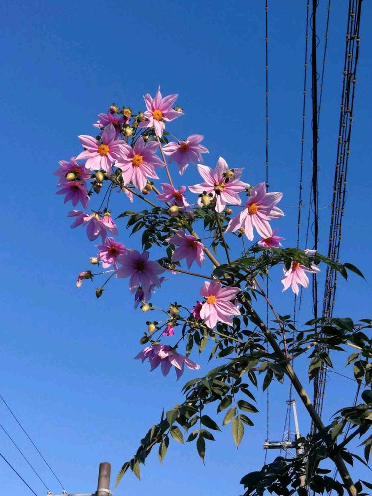 空に届きそうな皇帝ダリアさん🌸ですね✨✨
