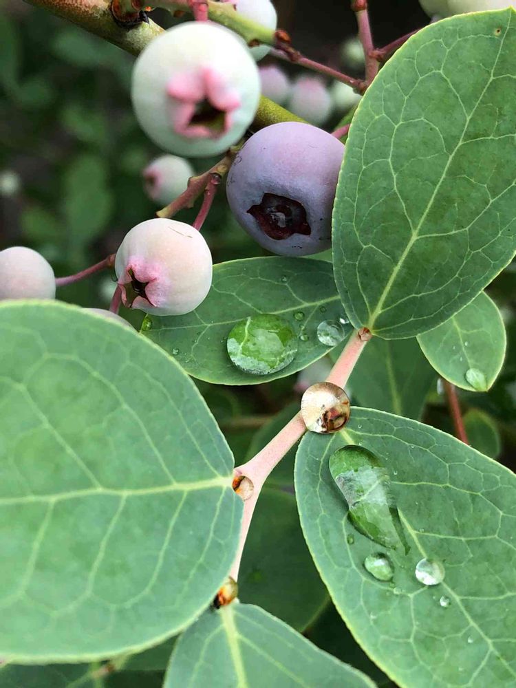ブルーベリーの葉っぱ 雨水 はじいてる💧