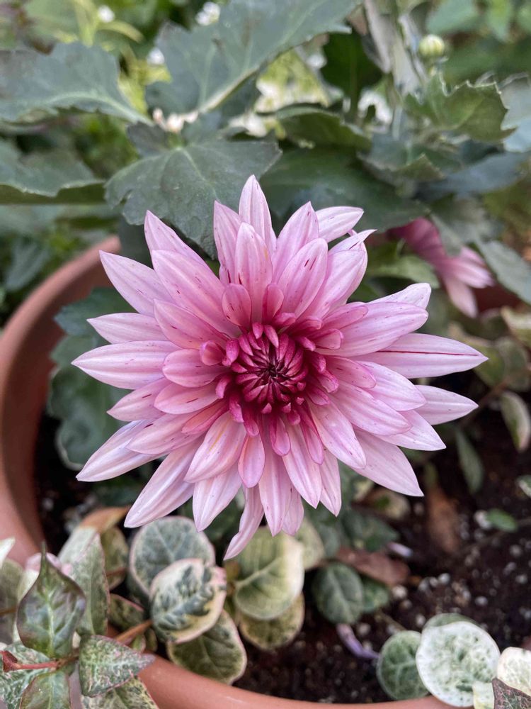 花がらを摘んだ後、新しいお花が咲いてくるのは、嬉しさ格別!ポットマム ダンテダーク。