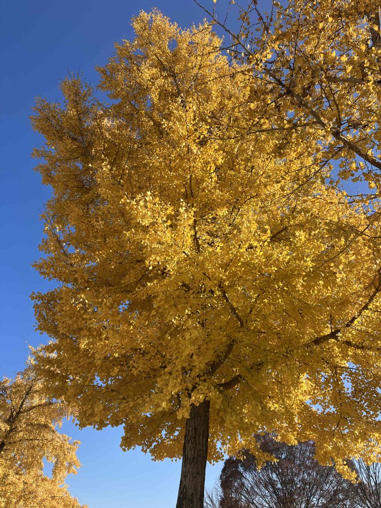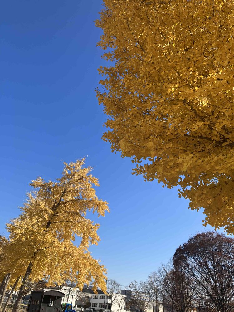 市内の小さな公園ですが、タイミング良く黄金に輝く銀杏の木に出会えてラッキーでした✨😃✌️1週間後に通ったら、殆ど葉が落ちてしまいましたから💦
