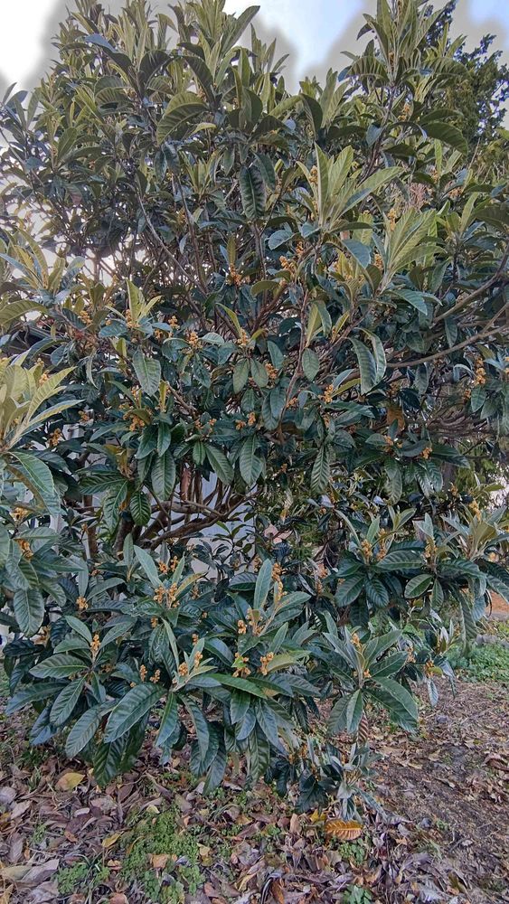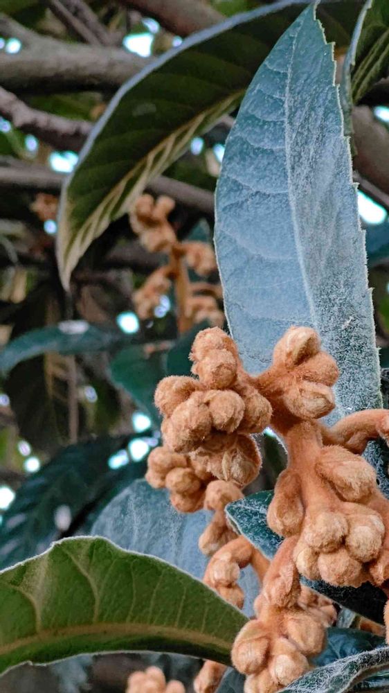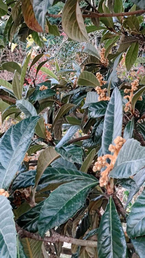 ビワの花 今年も沢山花芽を付けてくれましたよ🎵