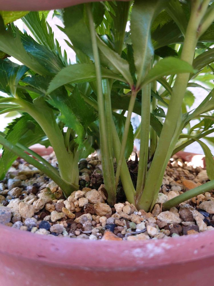 セオリーでは、秋の休眠明けにこういう葉芽を出さないのが良いとされていますが、そう、うまくいくはずもなく。この株は花芽6つに新しい葉芽が10個くらい出てます。😁