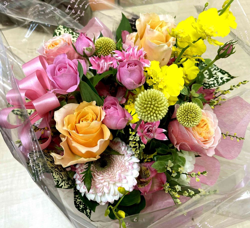 今年から施設に入ったので、一緒にお祝い出来ませんが、面会に行って💐渡して来ました。お花屋さんが可愛く仕上げてくれたので、お花が大好きな母親は嬉しそうでした☺️