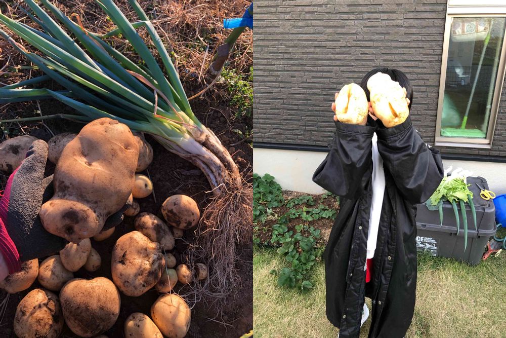 ジャガイモと長ネギを収穫しました。ジャガイモでかーい( ^∀^)