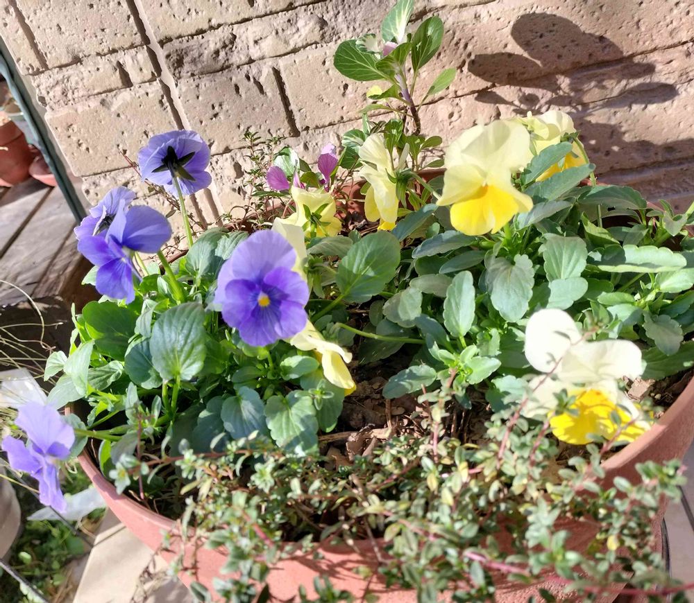 ここ数日、最低気温がマイナスを記録する中、玄関先の寄せ植えがますます馴染んできました✨