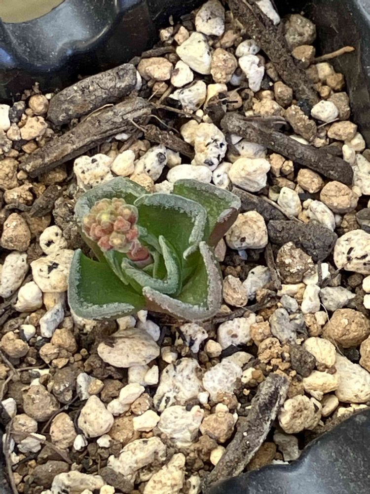 おはようございます。オマケでもらった小さな多肉たち、セルトレーの中でちゃんと育っています🥰1枚目は多分クラッスラですね、花咲そう💦2枚目はランナー出してかわいい子持ち蓮華♥️