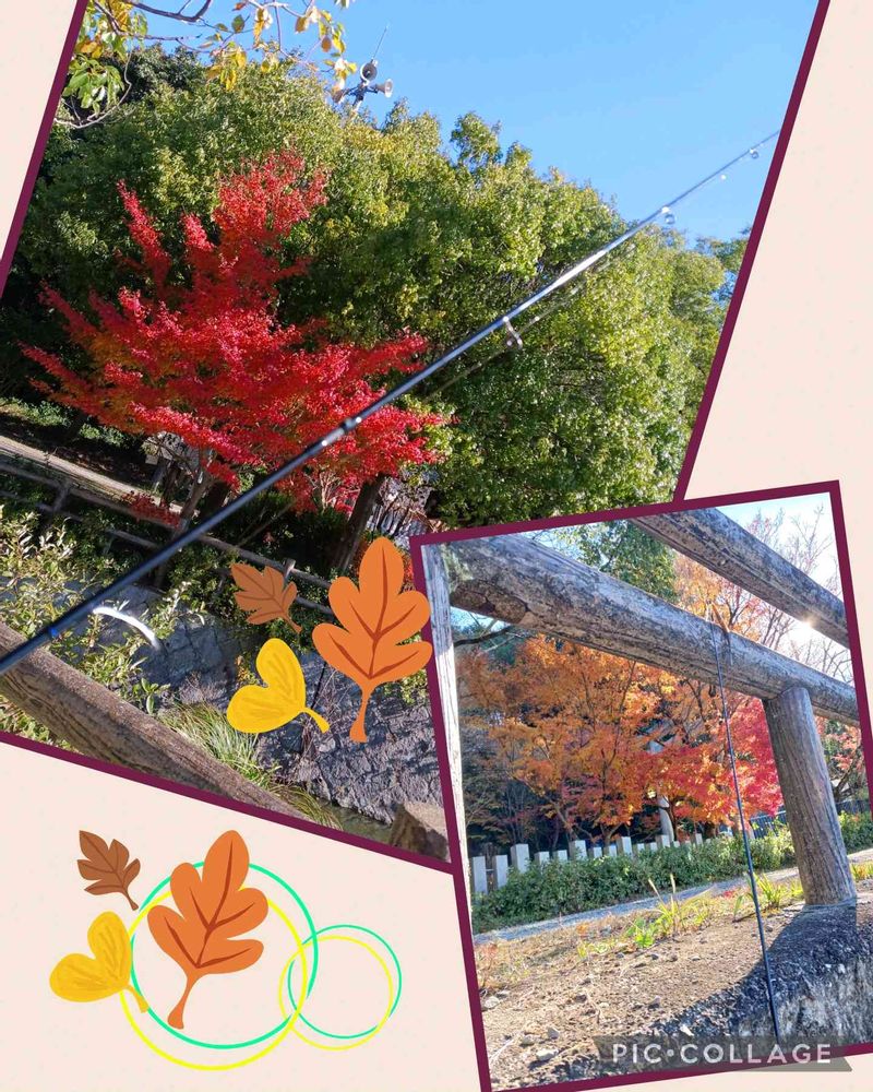 紅葉がすごく綺麗で、青空と緑と紅葉+竿でパシャリ🍁🎣✨