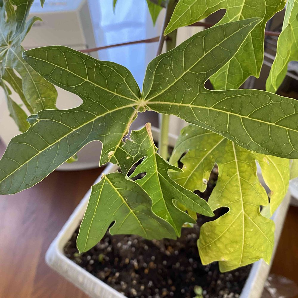 葉っぱがこんなになるのは虫?!寒くなってきたので家の中に入れた時にぶつかったのか....