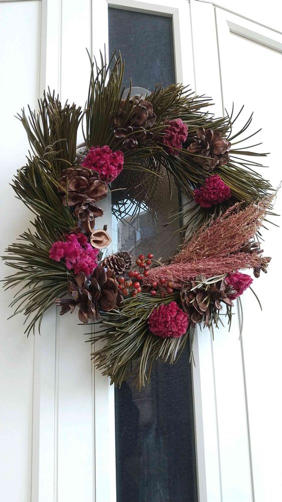 昔、体力もあり 時間もあった年には、山に行ったときに採取した材料で自作しましたが、今年は バザーに献金し、ほんの少しだけアレンジしました。
