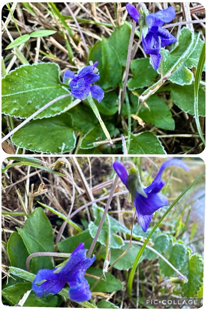 凍りついた野芝の中から、なんとまあスミレの花が咲いてました。なんかこんな霜の中から咲いてると健気というか可哀想というか…😓