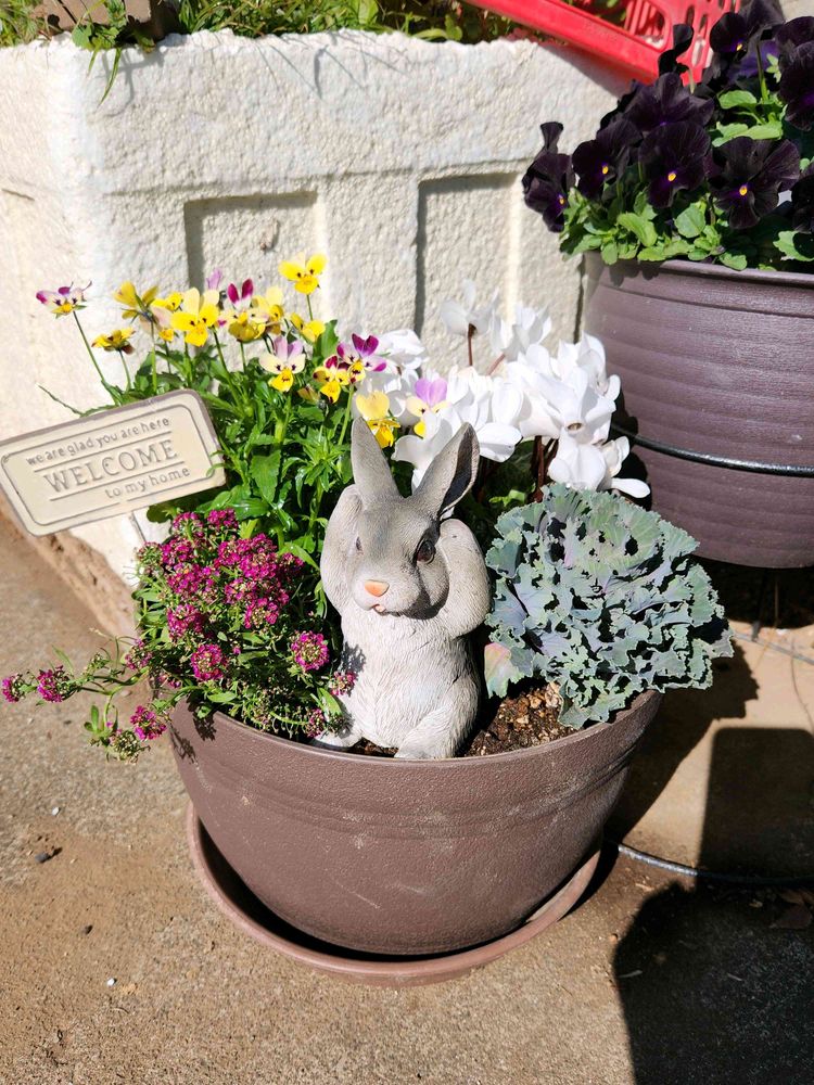 丁度スペースが空きましたので、何かないかなぁと庭を探してたら うさぎさんがいたので置いてみました(*^^*)