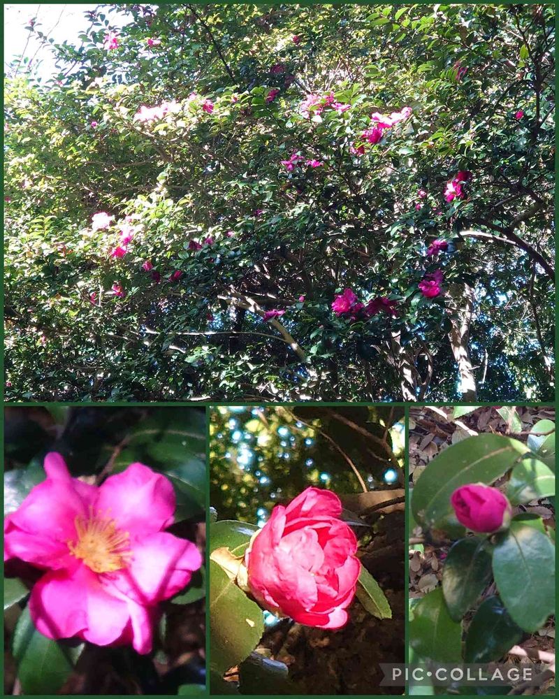 ④森の中では赤いサザンカの花がめだちました。見上げるほど大きな木です🙄😍❤️