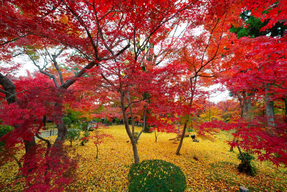 京都永観堂の苔と銀杏と紅葉