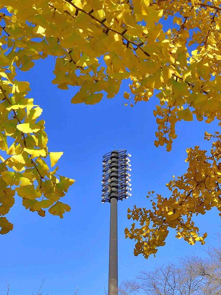 伊勢原市総合運動公園のいちょう並木です。美しい風景と黄色の絨毯に感動しました。