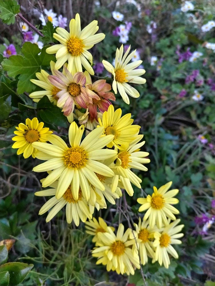 黄色い菊なのに、枯れ始めるとピンク色になって不思議!