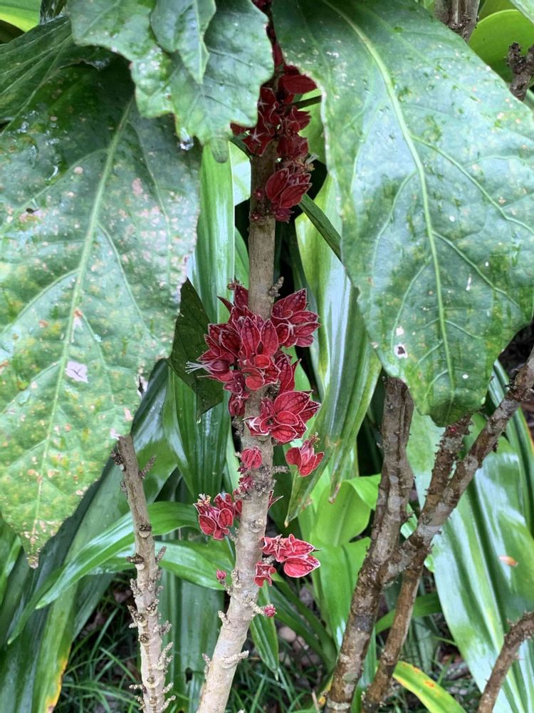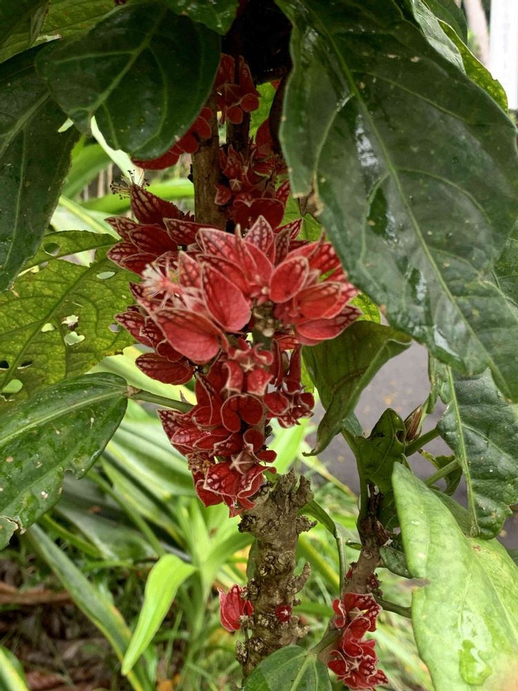 木の幹から直接花を付けている幹生花、花弁のようなところは副萼、内側に花弁がある🧐