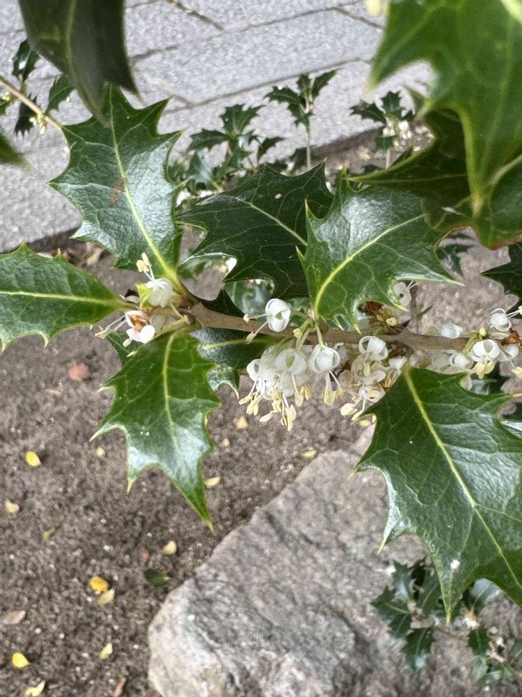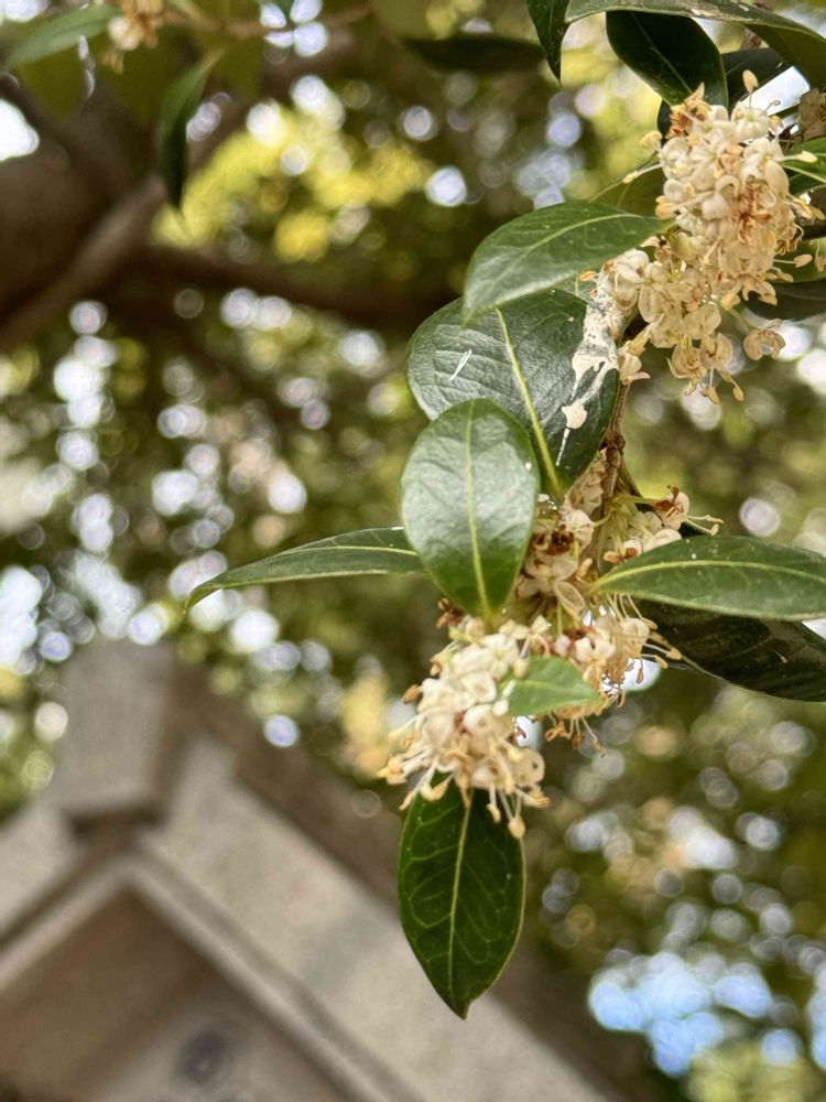 ①大木の下の方の枝の花と葉です。