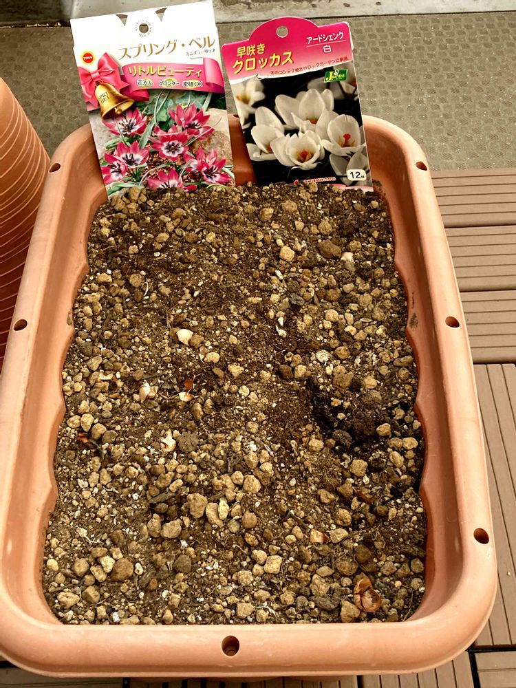 pic2 1ヶ月程前に球根を植え付けた実家テラスのプランターですか、🌱はいつ出るのか、冬の楽しみです😊