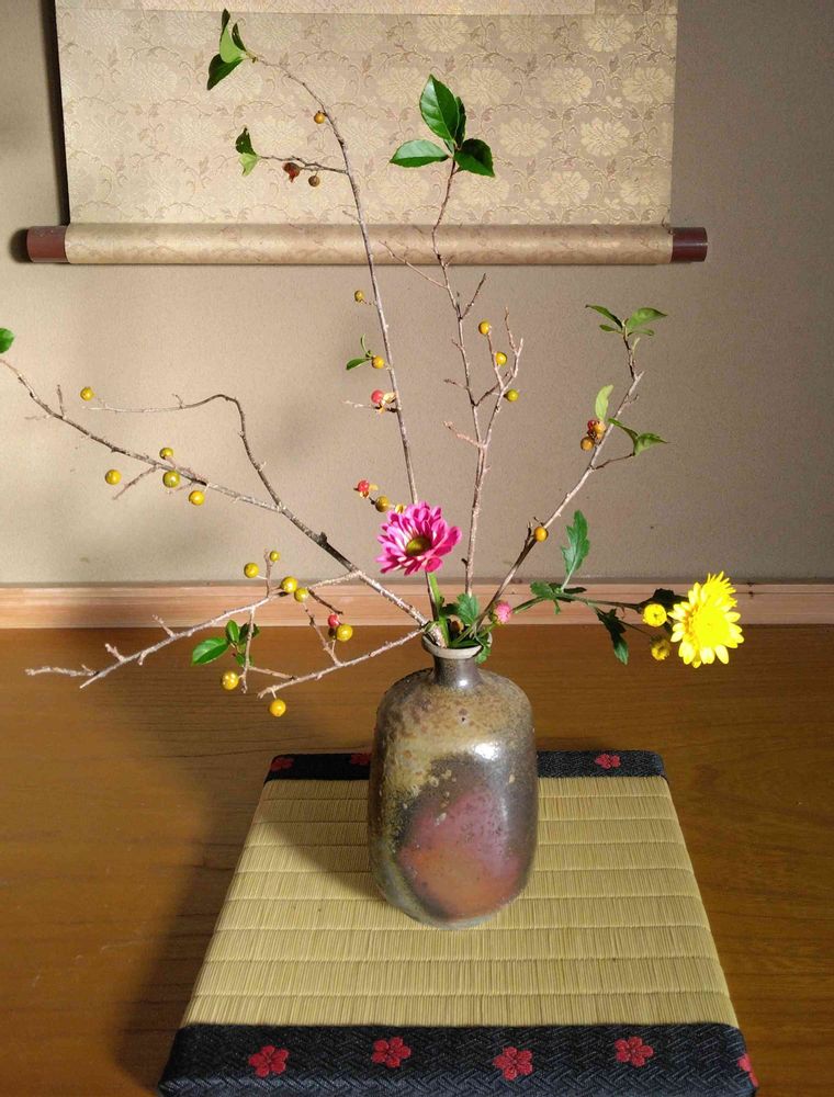 和室,ウメモドキ,スプレーキク(スプレーマム)の投稿画像