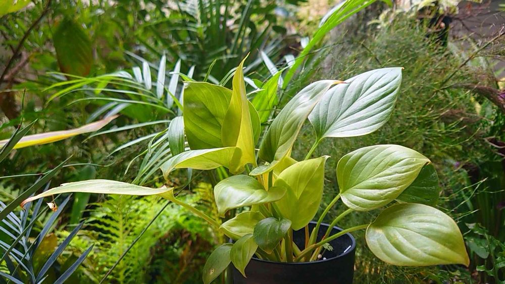 ライムグリーンのホマロメナ。他のホマロメナよりは耐寒性もありそうなので、数ヶ月前にお迎えしたもの(2枚目)は、もう少し外で頑張ってもらおうかどうしようか🤔
