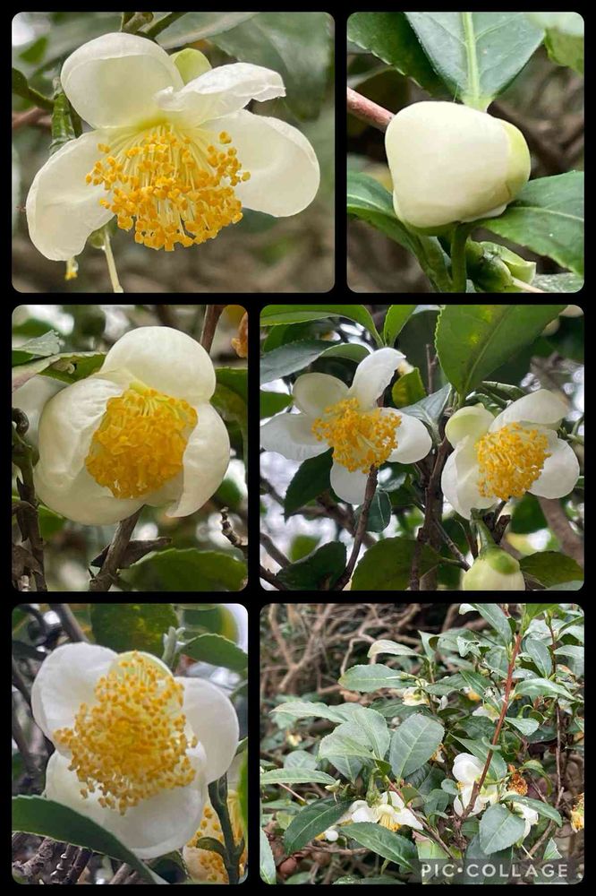 近所でチャノキのお花が咲いています。