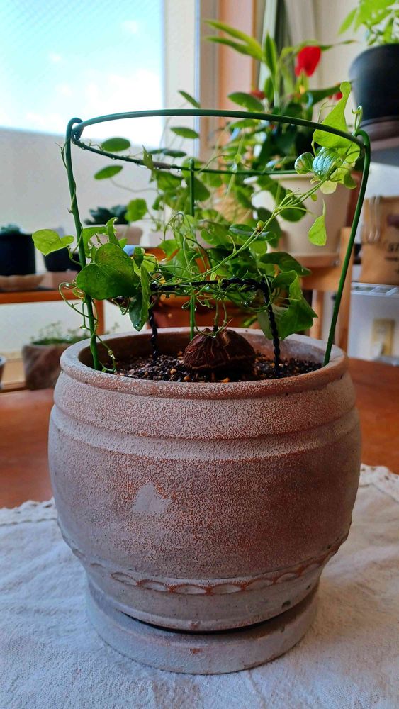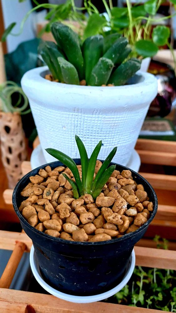 ついでにギョクサンの横で、ギョクサンと鉢に挟まれそうな小さいコがいい感じに育ち始めていたので、分けてみた🌱 ͛.*