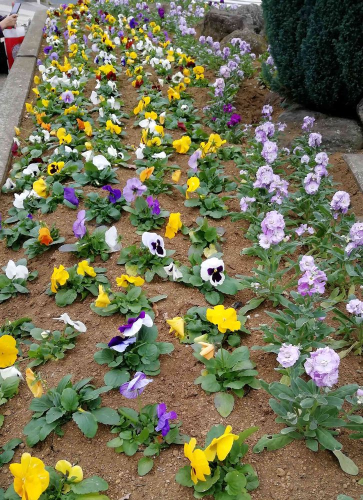 駅前のロータリーに植えられたパンジーとストックです😌💓