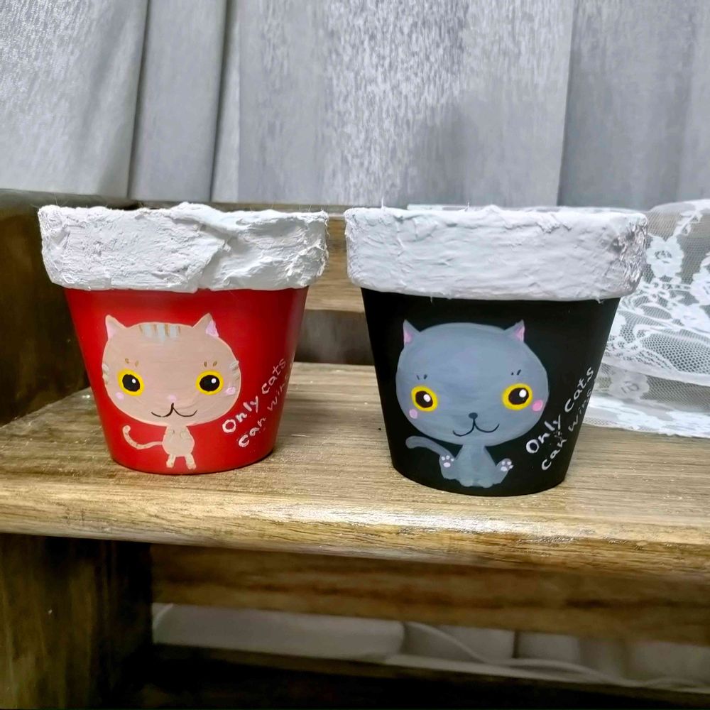 私は、黒にグレー🩶の猫ちゃん鉢が1番、2番はベージュに黒のハチワレちゃん💕