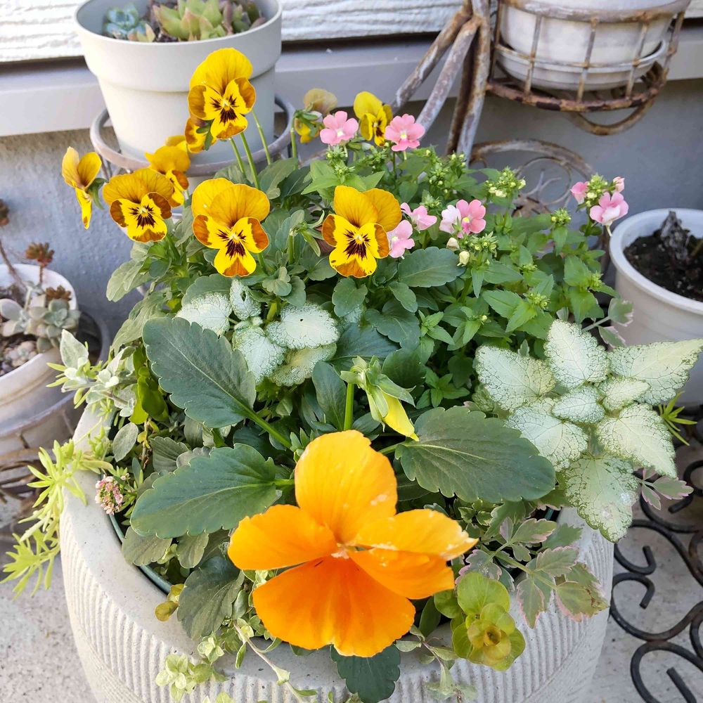 11月11日に「趣味の園芸フェアinかわさき」というイベントへ娘と行ってきました。。三上真史さん、間室みどりさん、上田広樹さんという豪華メンバーのパンジービオラの寄せ植えづくりをライヴで見せていただき、それぞれの美しさにため息が。それと同時に、皆さんの息ぴったりのトークに仲の良さが感じられて楽しかったです。帰りに川崎の生産者さんが育てた色とりどりのパンジーから1ポットプレゼントしていただきました♪川崎市は、以前はパンジーの生産量日本一だったそうです。私と娘が受け取ったオレンジ色のパンジーで寄せ植えを作りました。