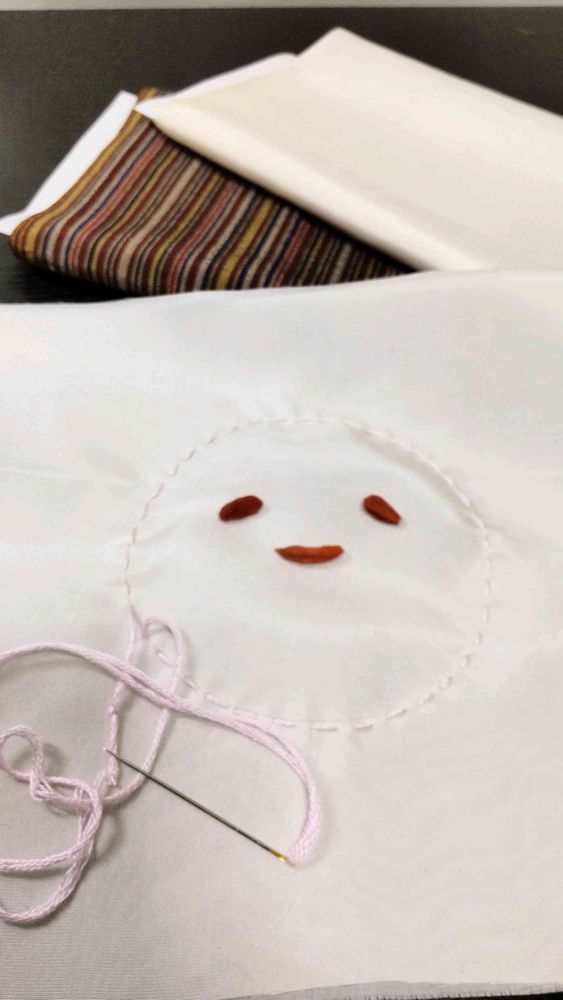 古くなって、少し埃を被ってしまったので、一番外側をとって新しいお顔を絹の布で縫ったんです❣️ほっぺもピンクにしてとっても可愛くできました(^ー^)♡ 私の相棒です💖
