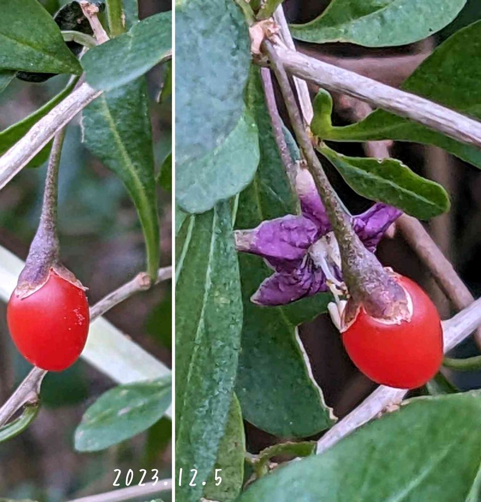 お花と実が仲良く可愛いですね🌿💜🔴💜🌿
