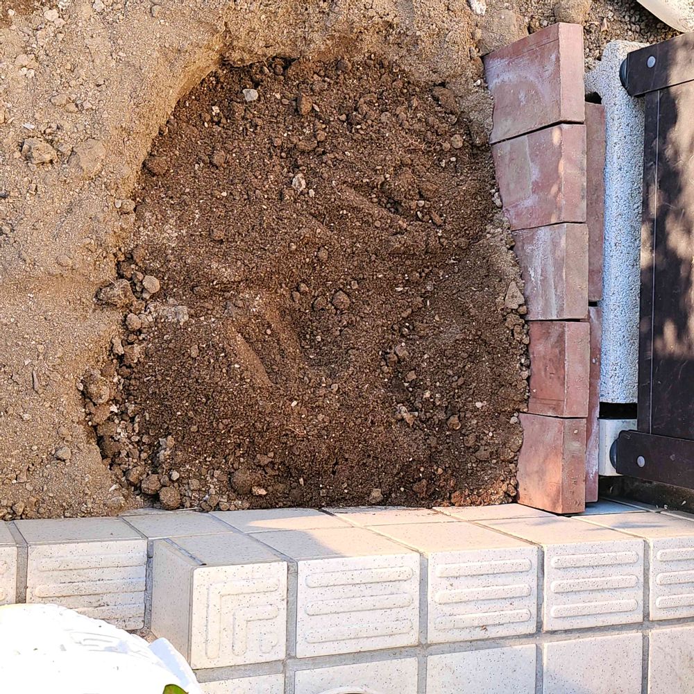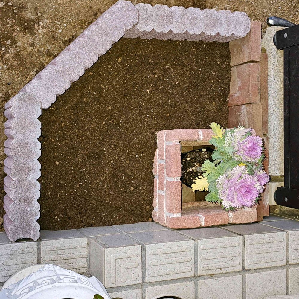 4枚目 昨日土留めブロックを買って来て枠を付けました☺️